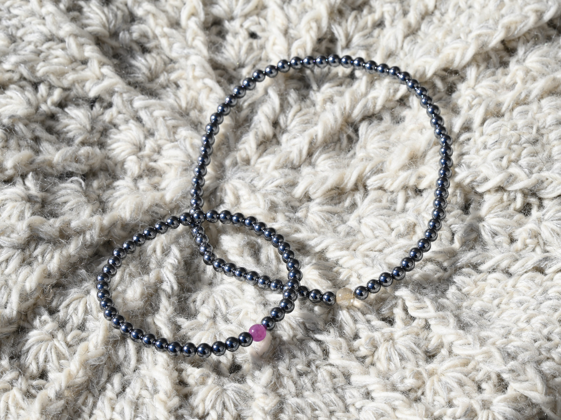 ゴムを丸める場所を作るのに一粒だけ可愛いのを入れてみたんだよ