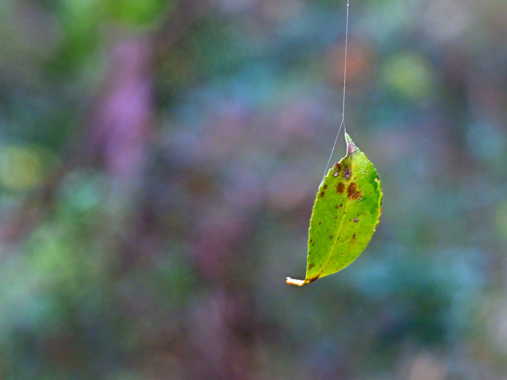 目の前を高速で回る蜘蛛の糸に囚われた葉っぱ